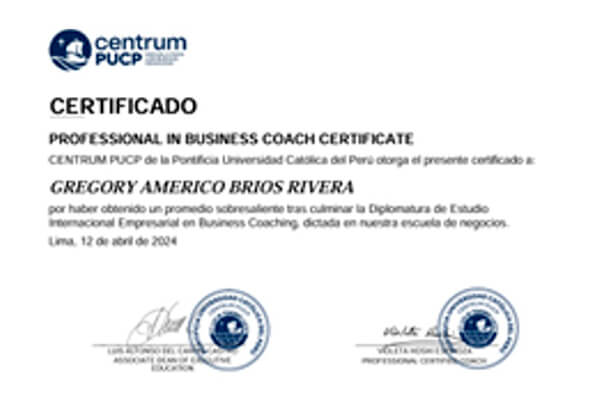 COACH PROFESSIONAL IN BUSINESS COACH CERTIFICADO POR CENTRUM PUCP
